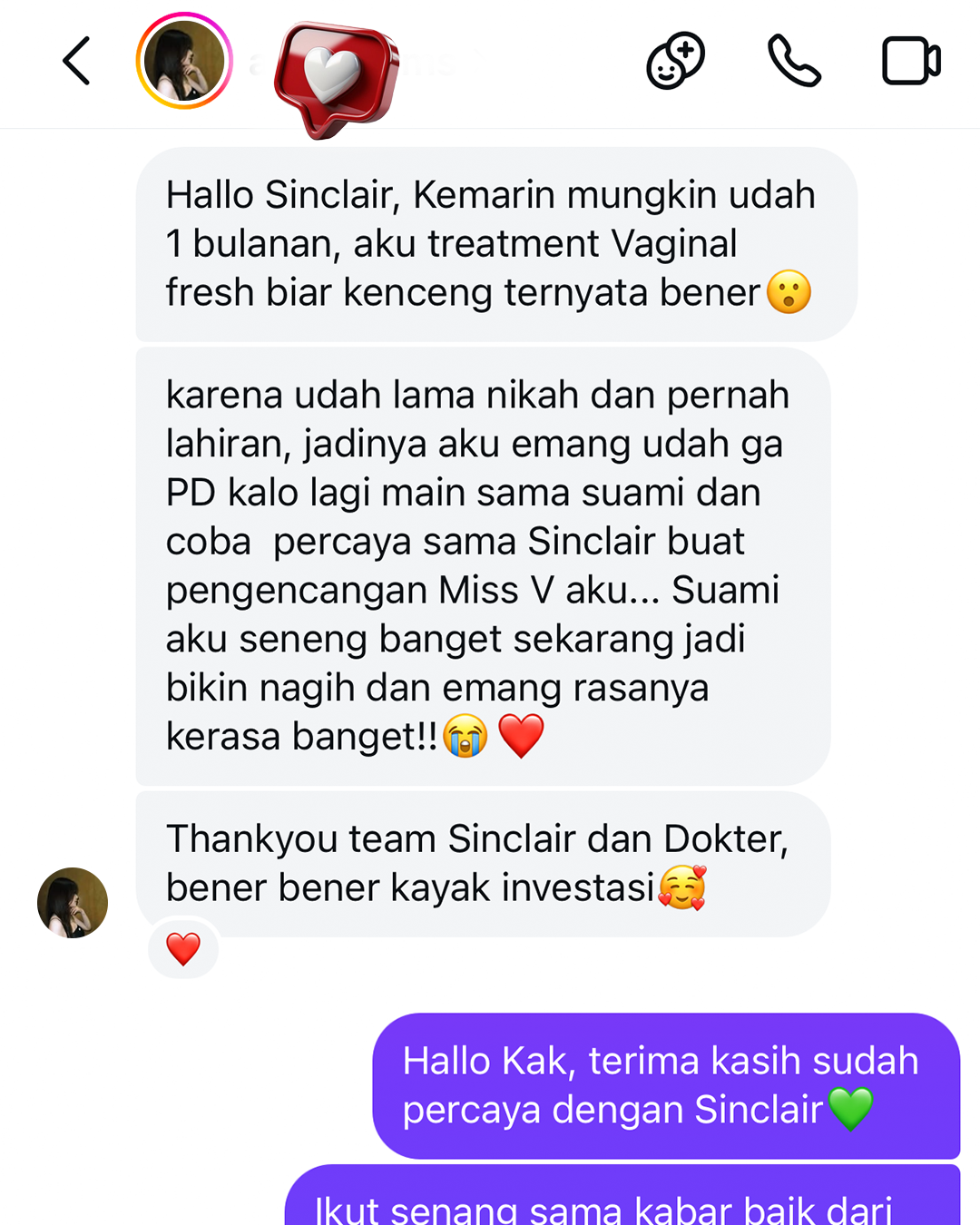 Setelah 1 sesi: Area vagina terasa lebih kencang dan lebih lembap
